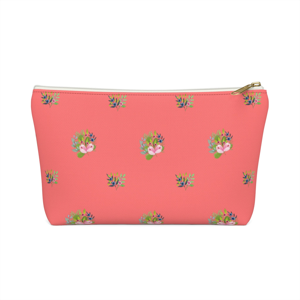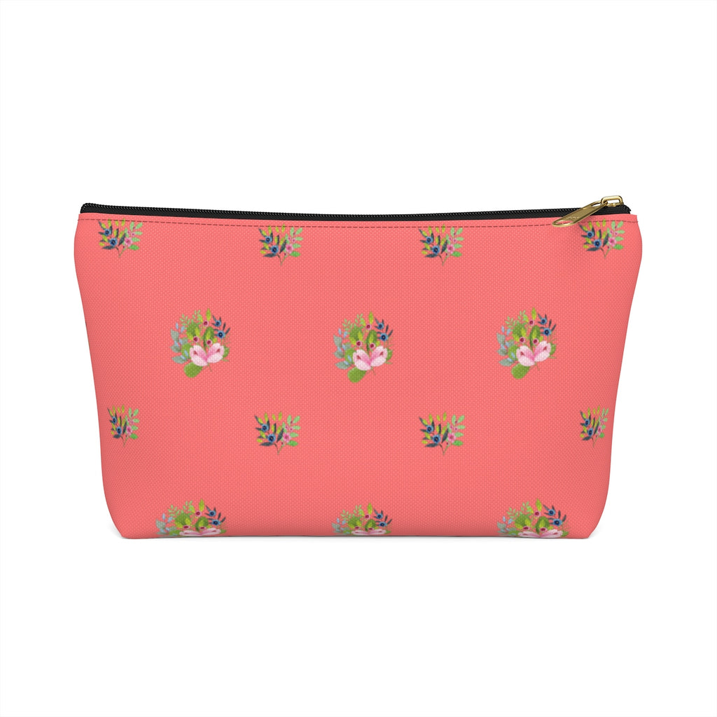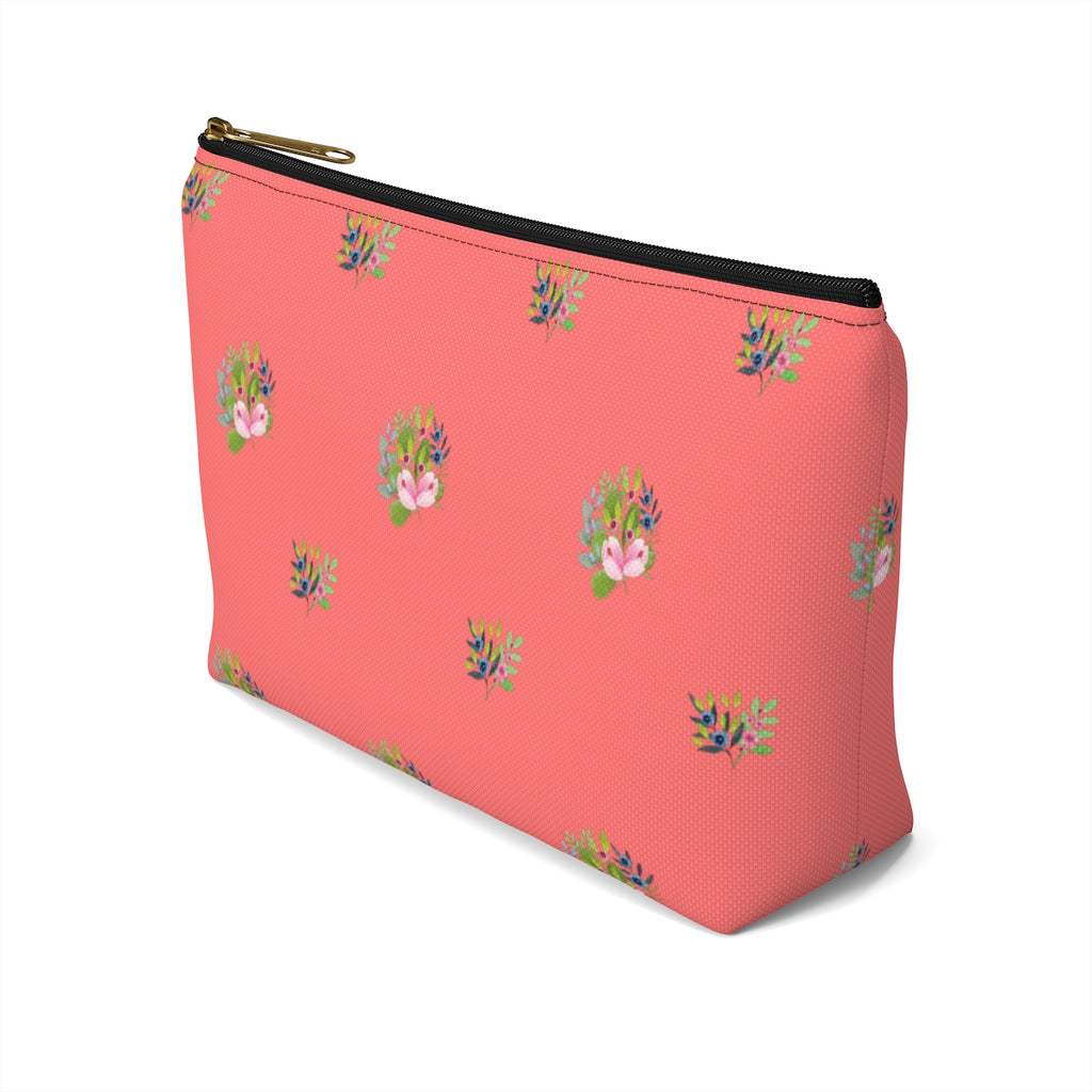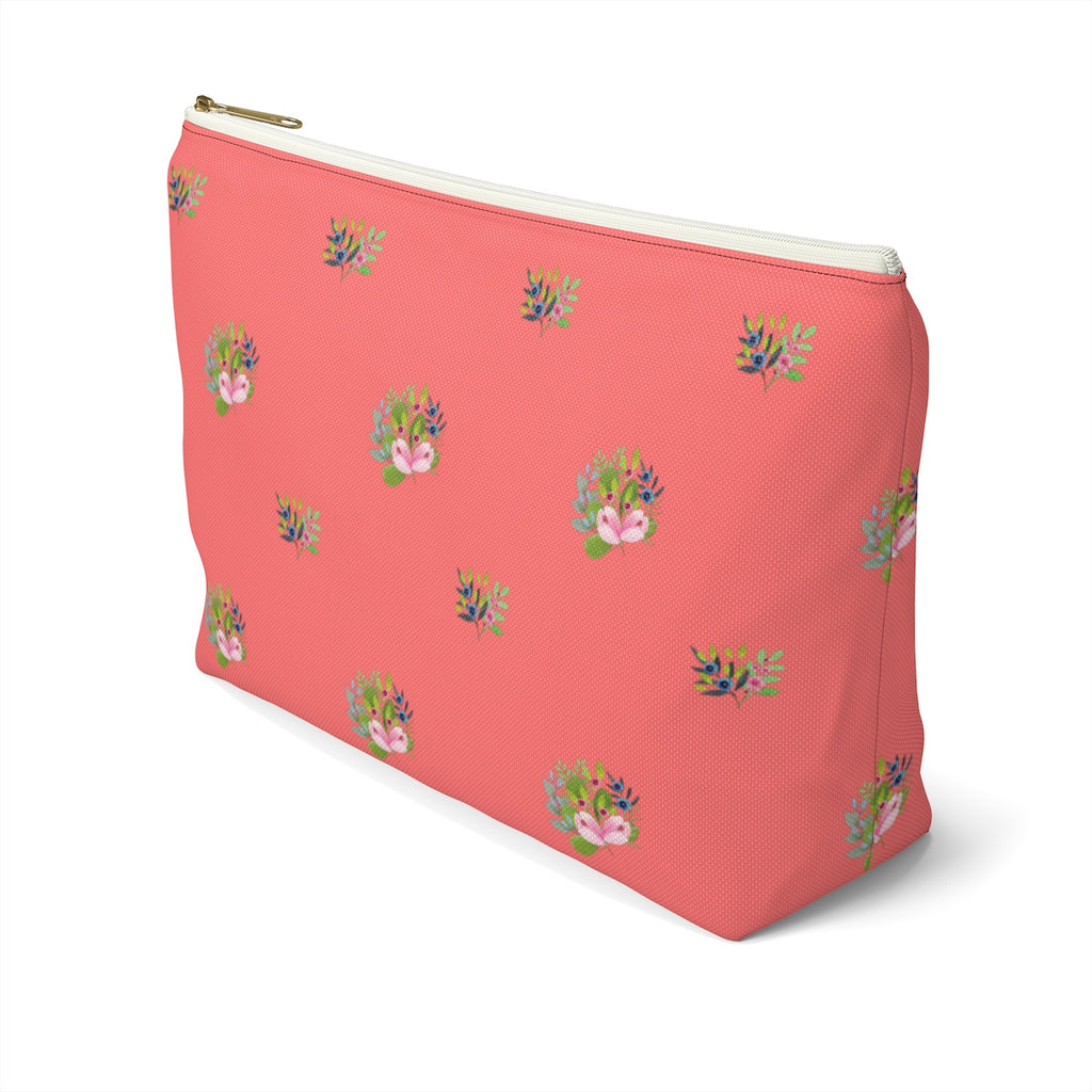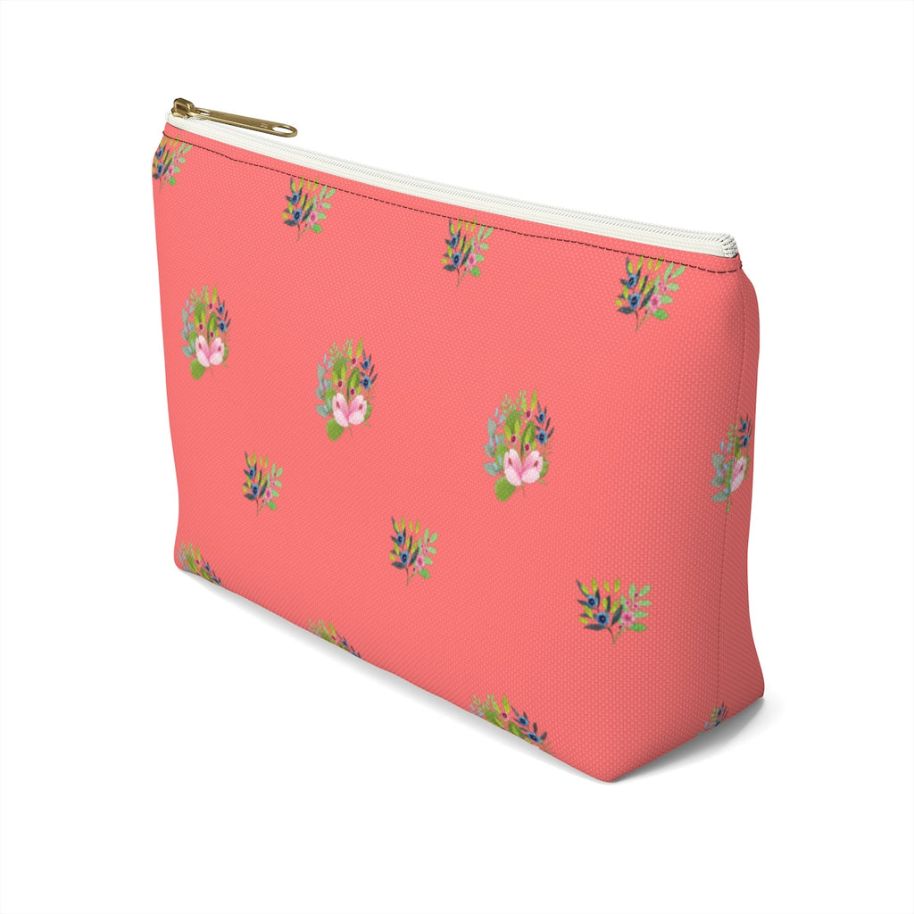 Our T-bottom pouches vary from small to large and can be used for pretty much anything. They make excellent pencil cases and cosmetic travel bags. They are constructed of a durable material with a zipper closure.